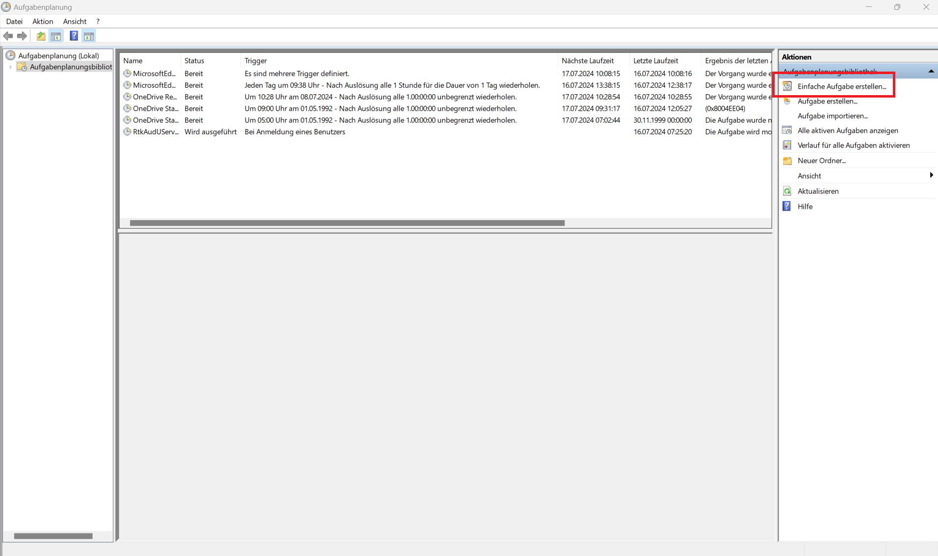 Damit ist die Aufgabenplanung abgeschlossen. Die erstellte Aufgabe wird jeden Tag um 4:00 Uhr die ausgewählte Batch Datei ausführen und die dort hinterlegten Befehle werden dann ebenfalls ausgeführt.