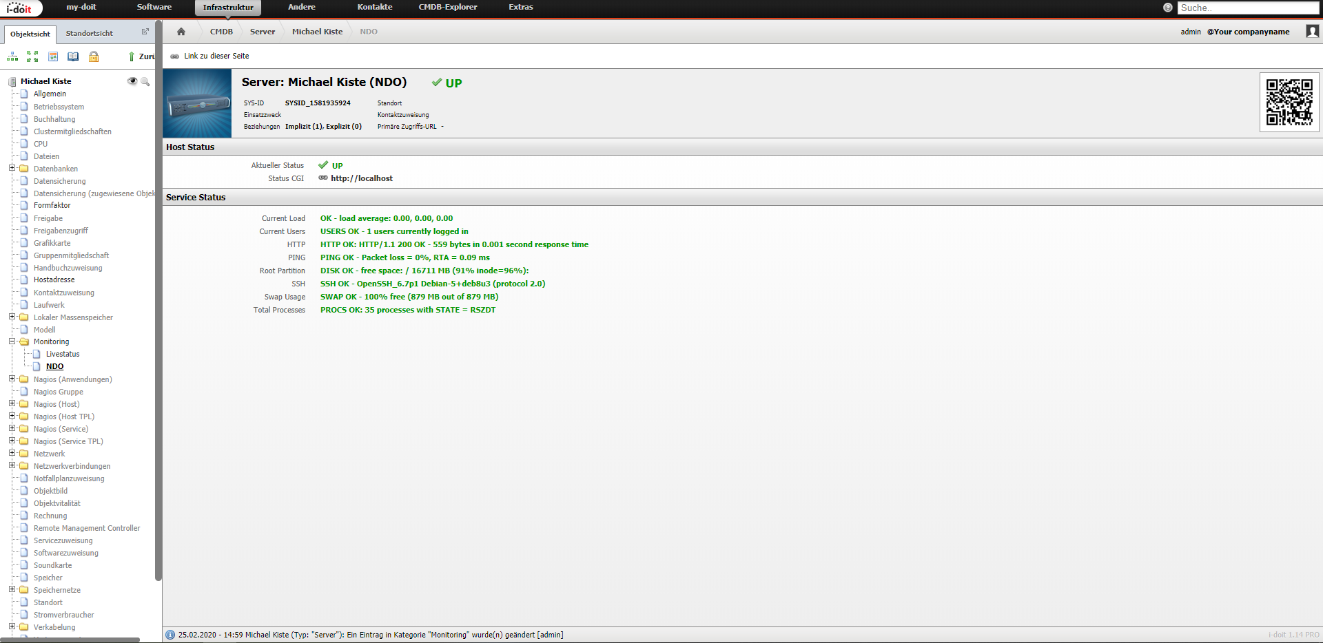 Wird die Kategorie aktiviert und der Eintrag abgespeichert, kann in der Kategorie Livestatus bzw. NDO der aktuelle Status abgefragt werden.