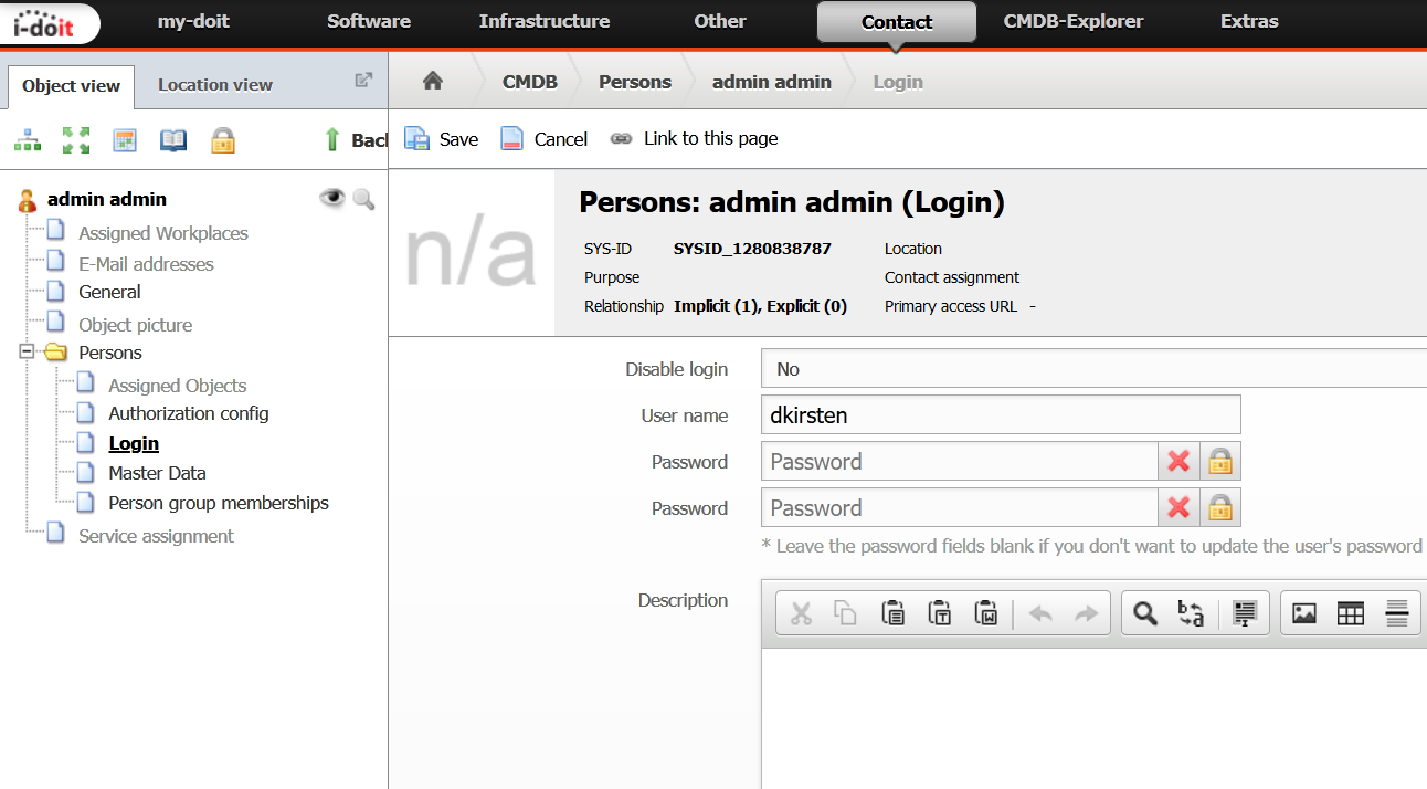 4. In i-doit einloggen und für den gewünschten i-doit User als Login Namen eintragen.