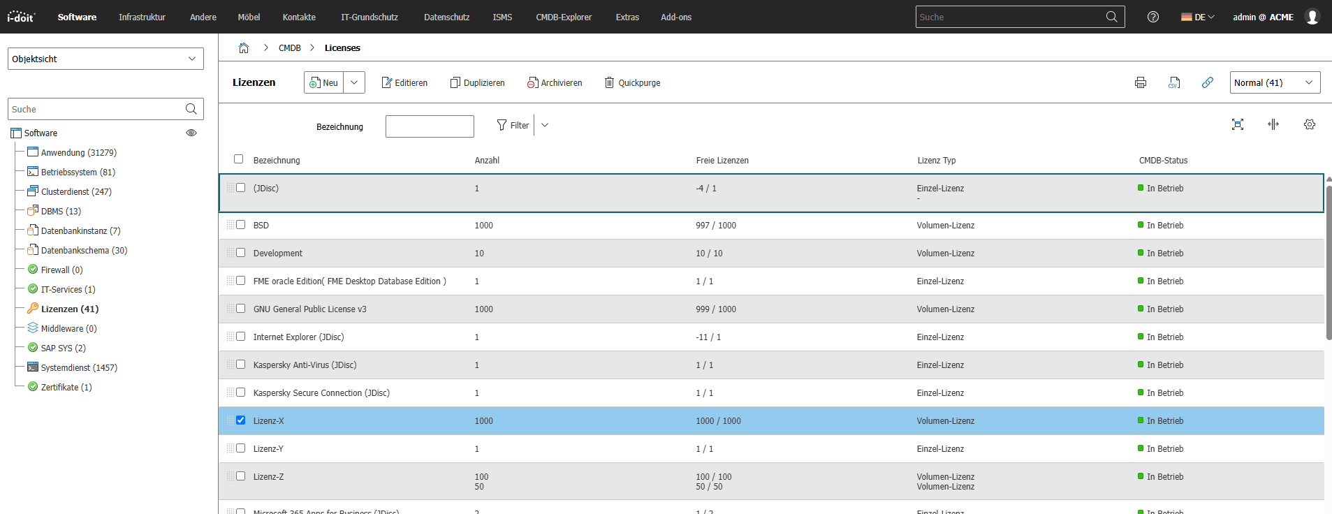 Solltest du alles richtig gemacht haben, erscheinen nun die einzelnen Lizenzen in der Listenansicht.