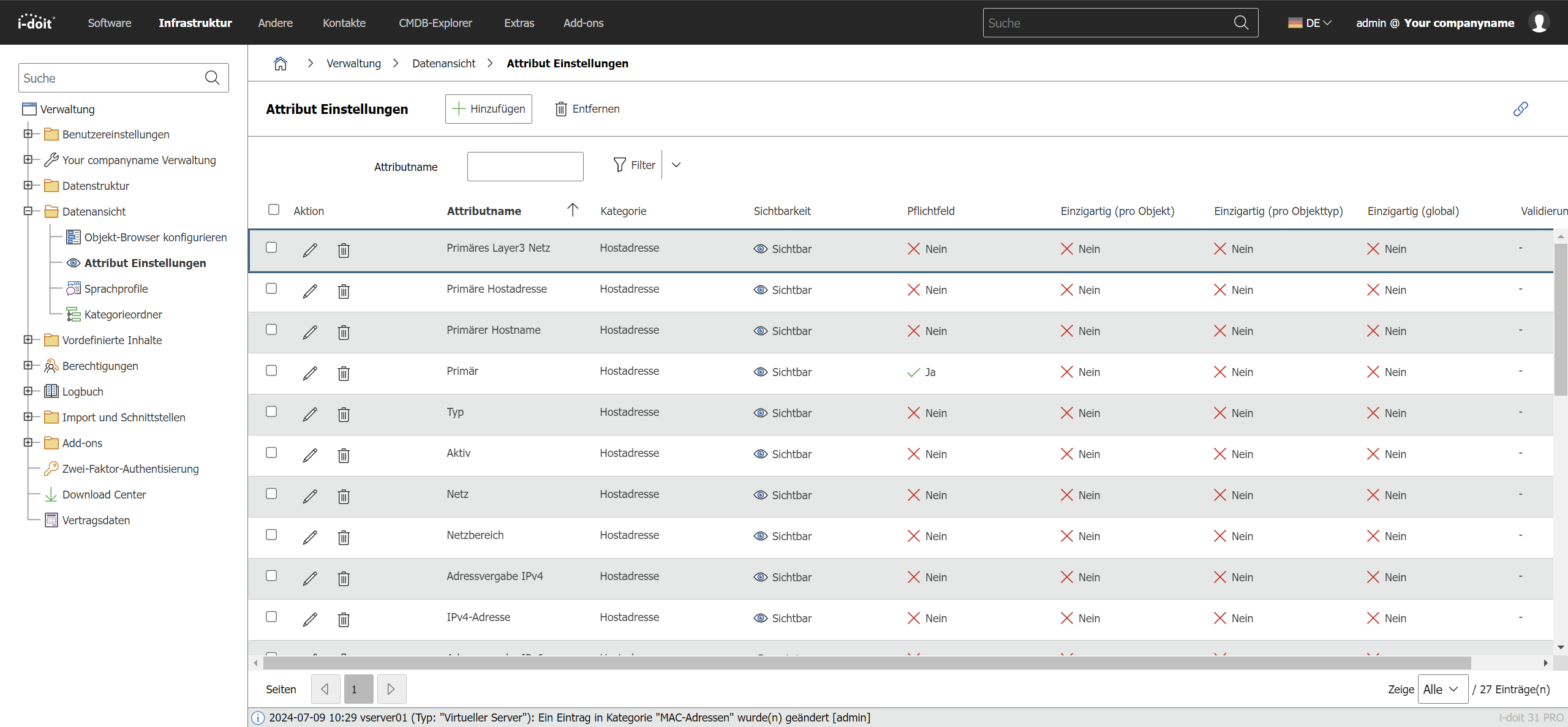 Wer die Eindeutigkeit von Attributen sicherstellen möchte oder bei der Pflege von bestimmten Feldern nur definierte Werte erwartet oder Felder zu Pflichtfeldern machen möchte, findet bei i-doit die entsprechenden Funktionen.
