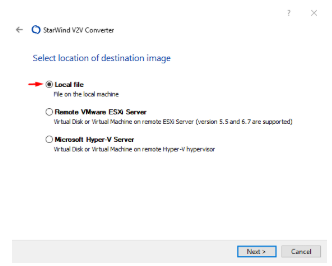 Nach der Installation des Starwind Converters starten wir diesen und wählen wir als Quelle "Local File" aus und gehen auf "Next" :