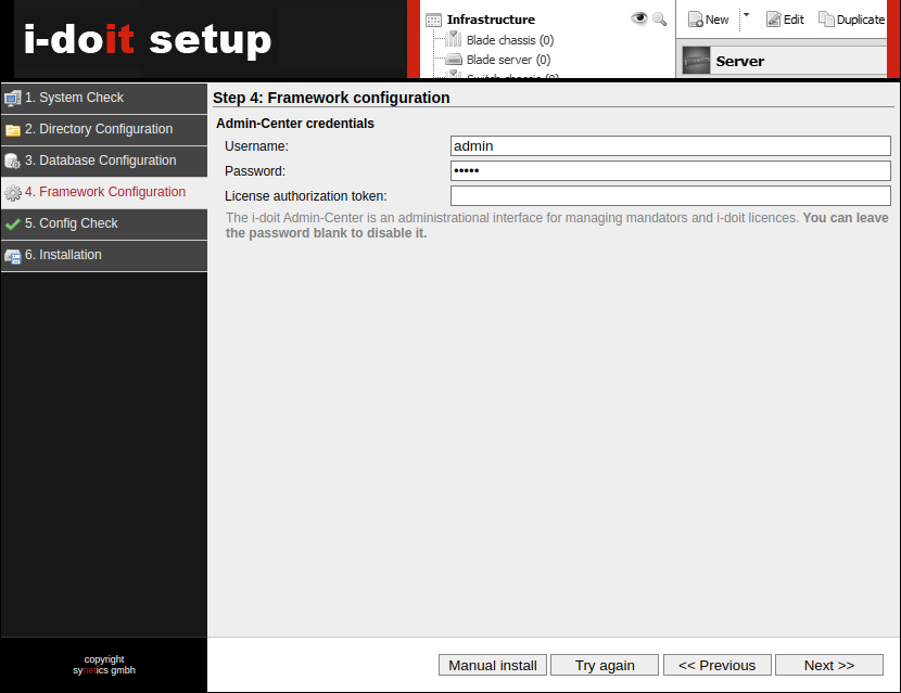 Das Setup wird automatisch aufgerufen, wenn man mit dem Browser i-doit aufruft (Beispiel http://i-doit-host/).