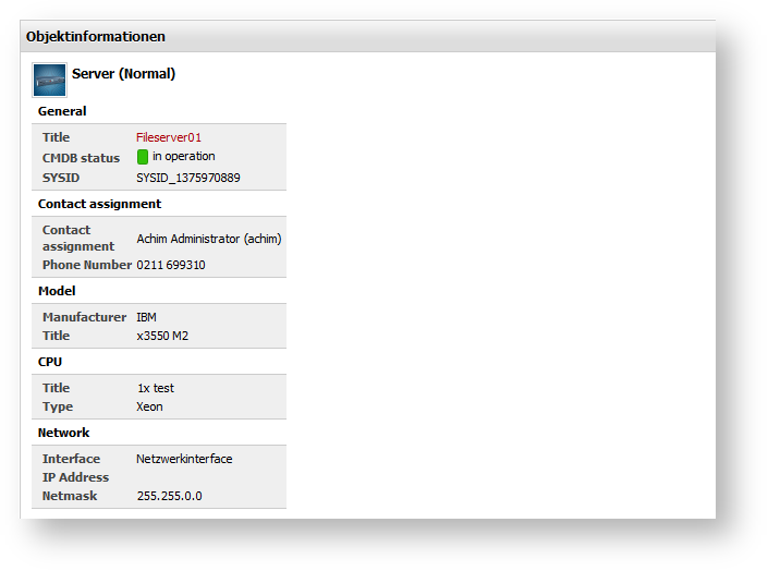 A smaller variant of the regular CMDB-explorer without extended features can be displayed here. For this purpose, select an object with the pencil which is loaded automatically when the dashboard is started.