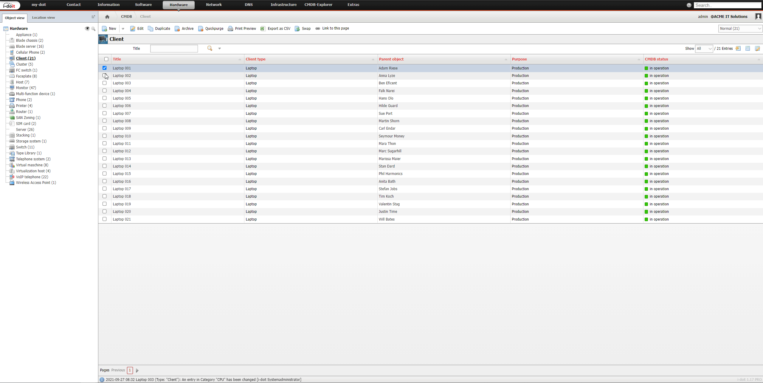 You can find the list editing at Extras → CMDB → Listen editing.