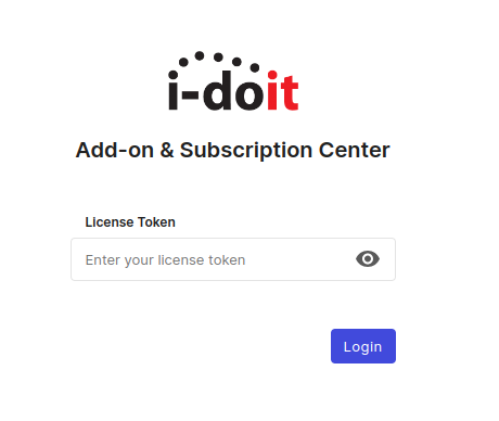 A license token is required for the Add-on & Subscription Center. Customers of i-doit receive the necessary information for the creation of a user account during the ordering process.